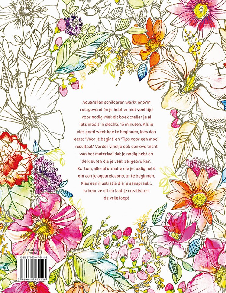 Meer dan 30 uitscheurbare illustraties om in te kleuren met aquarelverf. Prachtige pioenen, vrolijke ranonkels, levendige tulpen… gun jezelf een moment van rust door wondermooie bloemen te schilderen met aquarelverf. Het is heerlijk om te doen én je hebt er niet veel tijd voor nodig. Om je op weg te helpen, vind je naast talloze tips ook een overzicht van het materiaal dat je nodig hebt en de kleuren die je vaak zal gebruiken. Kortom, je vindt alle informatie die je nodig hebt om aan je aquarelavontuur te beginnen. Gebrocheerde uitgave met flappen.