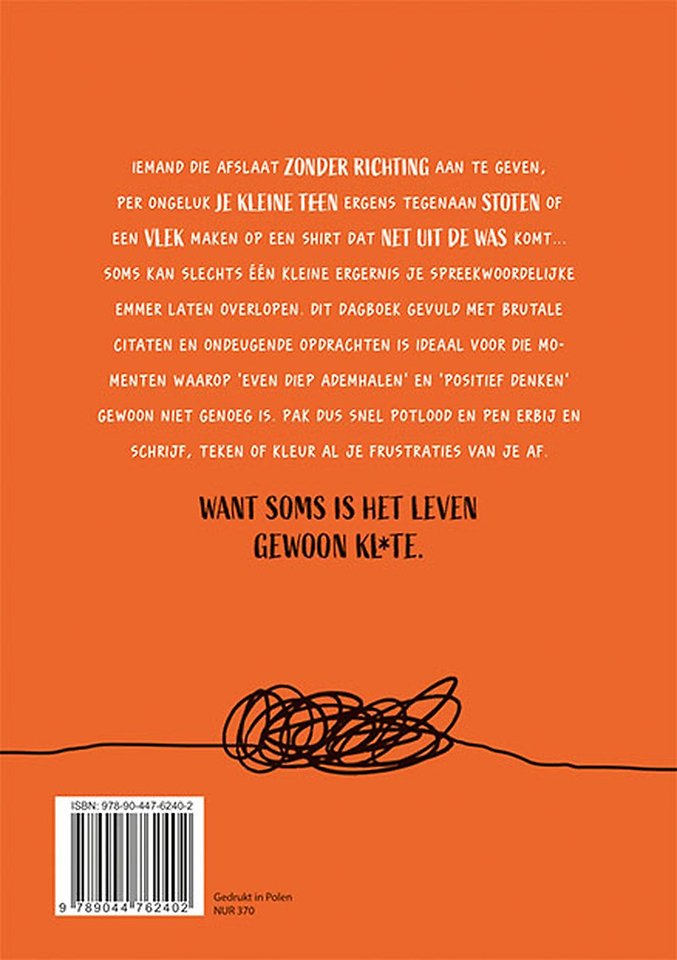 Soms is het leven gewoon kl*te en wil je niets liever dan je frustraties op iets afreageren. Dit dagboek gevuld met brutale citaten en ondeugende opdrachten is ideaal voor die momenten waarop 'even diep ademhalen' en 'positief denken' gewoon niet genoeg is. Iemand die afslaat zonder richting aan te geven, per ongeluk je kleine teen ergens tegenaan stoten of een vlek maken op een shirt dat net uit de was komt... soms kan slechts één kleine ergernis je spreekwoordelijke emmer laten overlopen. Pak dus snel potlood en pen erbij en schrijf, teken of kleur al je frustraties van je af.