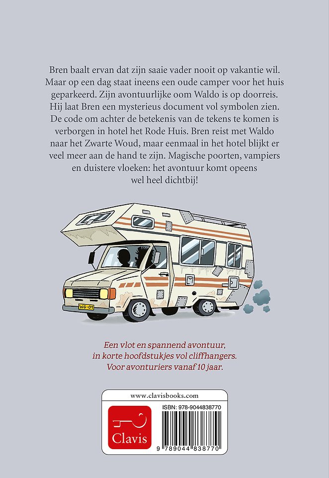 Bren baalt ervan dat zijn saaie vader nooit op vakantie wil. Maar op een dag staat ineens een oude camper voor het huis geparkeerd. Zijn avontuurlijke oom Waldo is op doorreis. Hij laat Bren een mysterieus document vol symbolen zien. De code om achter de betekenis van de tekens te komen is verborgen in hotel het Rode Huis. Bren reist met Waldo naar het Zwarte Woud, maar eenmaal in het hotel blijkt er veel meer aan de hand te zijn. Magische poorten, vampiers en duistere vloeken: het avontuur komt opeens wel heel dichtbij!
