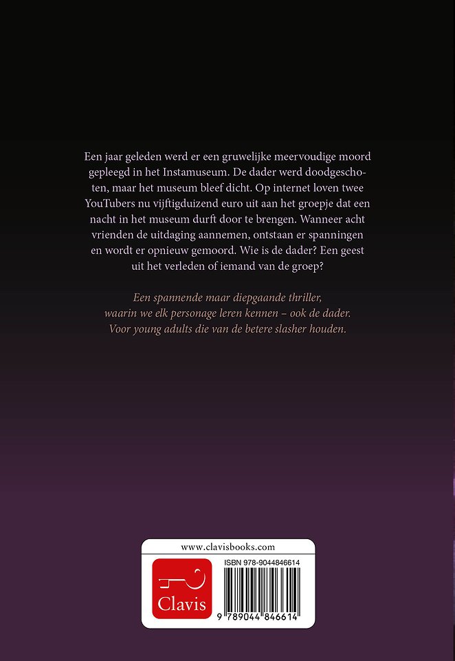 Een jaar geleden werd er een gruwelijke meervoudige moord gepleegd in het Instamuseum. De dader werd doodgeschoten, maar het museum bleef dicht. Op internet loven twee YouTubers nu vijftigduizend euro uit aan het groepje dat een nacht in het museum durft door te brengen. Wanneer acht vrienden de uitdaging aannemen, ontstaan er spanningen en wordt er opnieuw gemoord. Wie is de dader? Een geest uit het verleden of iemand van de groep?