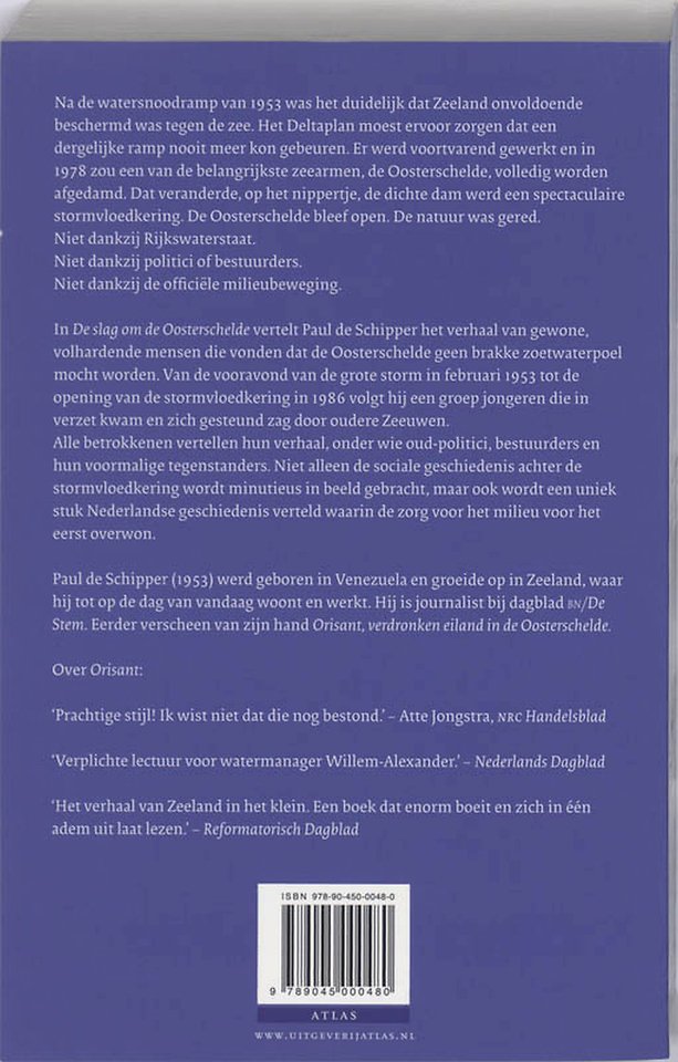 In 'De slag om de Oosterschelde' vertelt Paul de Schipper het verhaal van gewone volhardende mensen die vonden dat de Oosterschelde geen brakke zoetwaterpoel mocht worden. Van de vooravond van de grote storm in februari 1953 tot de opening van de stormvloedkering in 1986 volgt de Schipper een groep jongeren die in verzet kwam en zich gesteund zag door oudere Zeeuwen. Alle betrokkenen vertellen hun verhaal, onder wie oud-politici, bestuurders, en hun voormalige tegenstanders. Niet alleen de sociale geschiedenis achter de stormvloedkering wordt minutieus in beeld gebracht, maar ook wordt een uniek stuk Nederlandse geschiedenis verteld waarin de zorg voor het milieu voor het eerst overwon.