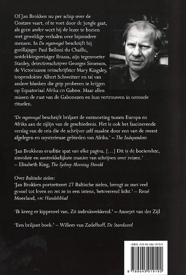 Of Jan Brokken nu per schip over de Oostzee vaart, of te voet door de jungle gaat, als geen ander weet hij de lezer te boeien met geweldige verhalen over bijzondere mensen. In De regenvogel beschrijft hij gorillajager Paul Belloni du Chaillu, ontdekkingsreiziger Brazza, zijn tegenvoeter Stanley, detectiveschrijver Georges Simenon, de victoriaanse reisschrijfster Mary Kingsley, tropendokter Albert Schweitzer en tal van andere blanken die grip proberen te krijgen op Equatoriaal Afrika en Gabon. Maar allen missen de rust van de Gabonezen en hun vertrouwen in oeroude rituelen.