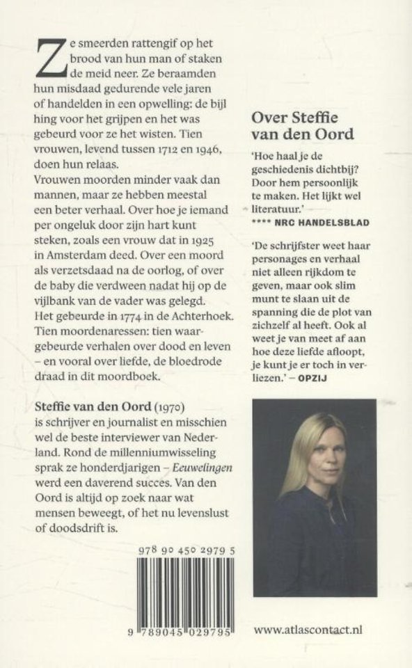 In De vrouw met de bijl van Steffie van den Oord doen tien vrouwen, levend tussen 1712 en 1946, hun relaas. Ze smeerden rattengif op het brood van hun man of staken de meid neer. Ze beraamden hun misdaad gedurende vele jaren of handelden in een opwelling: de bijl hing voor het grijpen en het was gebeurd voor ze het wisten. Vrouwen moorden minder vaak dan mannen, maar ze hebben meestal een beter verhaal. Over hoe je iemand per ongeluk door zijn hart kunt steken, zoals een vrouw dat deed in Amsterdam, 1925. Over een moord als verzetsdaad na de oorlog, of over de baby die verdween door hem op de vijlbank van de vader te leggen. Het gebeurde in 1774 in de Achterhoek. Tien moordenaressen: tien waargebeurde verhalen over dood en leven – en vooral over liefde, de bloedrode draad in dit moordboek.