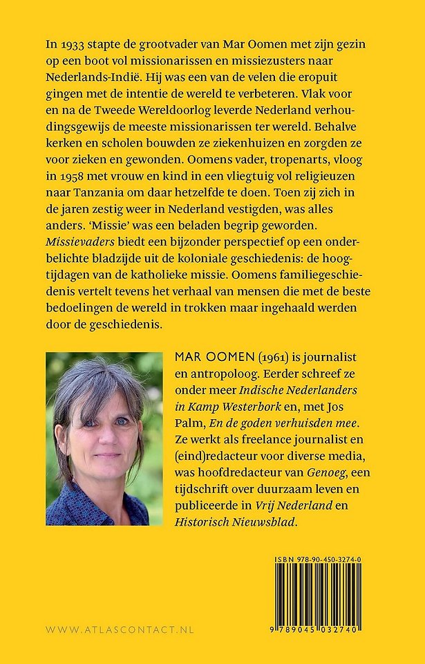 In ‘Missievaders’ biedt Mar Oomen een bijzonder perspectief op een onderbelichte bladzijde uit de koloniale geschiedenis: de hoogtijdagen van de katholieke missie. In 1933 stapte de grootvader van Oomen met zijn gezin op een boot vol missionarissen en missiezusters naar Nederlands-Indië. Hij was een van de velen die eropuit gingen met de intentie de wereld te verbeteren. Vlak voor en na de Tweede Wereldoorlog leverde Nederland verhoudingsgewijs de meeste missionarissen ter wereld. Behalve kerken en scholen bouwden ze ziekenhuizen en zorgden ze voor zieken en gewonden. Oomens vader, tropenarts, vloog in 1958 met vrouw en kind in een vliegtuig vol religieuzen naar Tanzania om daar hetzelfde te doen. Toen zij zich in de jaren zestig weer in Nederland vestigden, was alles anders. ‘Missie’ was een beladen begrip geworden. Oomens familiegeschiedenis vertelt het verhaal van mensen die met de beste bedoelingen de wereld in trokken maar ingehaald werden door de geschiedenis.