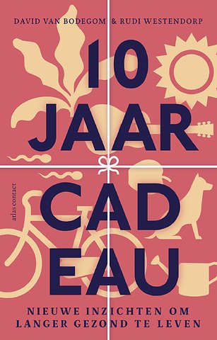 Verouderingsartsen David van Bodegom en Rudi Westendorp delen hun belangrijkste inzichten over ouder worden, gezondheid en vita-liteit. Is het écht mogelijk om jezelf – of een ander – tien gezonde levensjaren cadeau te doen, zoals de titel van dit boek belooft? Ja, zeggen Van Bodegom en Westendorp, en de sleutel daartoe ligt in onze omgeving. In Tien jaar cadeau komen diverse omgevingen uit het dagelijks leven aan bod, zoals de keuken, woonkamer, slaapkamer, super markt, het werk en de wijk. Verwacht geen opgeheven vingers; deze aanpak gaat uit van verleiden in plaats van verbieden. Door je te omringen met gezonde verleidingen maak je betere keu zes onderdeel van je dagelijkse routine. Kleine, slimme aanpassingen – grote wijnglazen inwisselen voor kleine, de fietstassen inruilen voor een rugzak – hebben een groot en duurzaam effect!