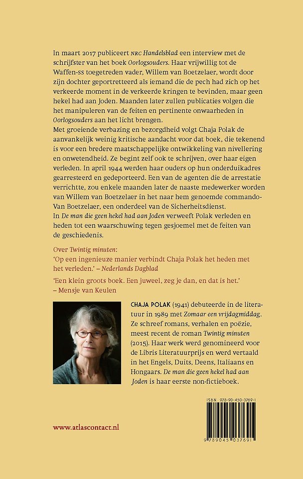 In maart 2017 publiceerde NRC Handelsblad een interview met de schrijfster van het boek ‘Oorlogsouders’. Daarin wordt haar vrijwillig tot de Waffen-SS toegetreden vader, Willem van Boetzelaer, geportretteerd als iemand die de pech had zich op het verkeerde moment in de verkeerde kringen te bevinden, maar geen hekel had aan Joden. Maanden later zullen publicaties volgen die het manipuleren van de feiten en pertinente onwaarheden in ‘Oorlogsouders’ aan het licht brengen. Met groeiende verbazing volgt Chaja Polak de aanvankelijk weinig kritische aandacht voor het boek. Ze begint zelf ook te schrijven, over haar eigen verleden.