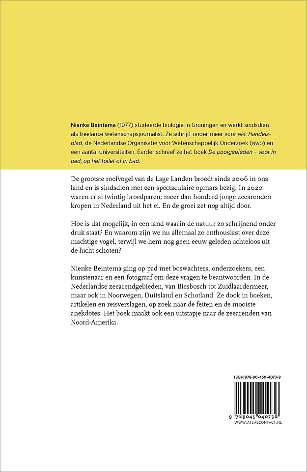 Nienke Beintema vertelt het verhaal van de grootste roofvogel van de Lage Landen in ‘De zeearend’. Deze broedt sinds 2006 in ons land en is sindsdien met een spectaculaire opmars bezig. In 2020 waren er al twintig broedparen; meer dan honderd jonge zeearenden kropen in Nederland uit het ei. En de groei zet nog altijd door.