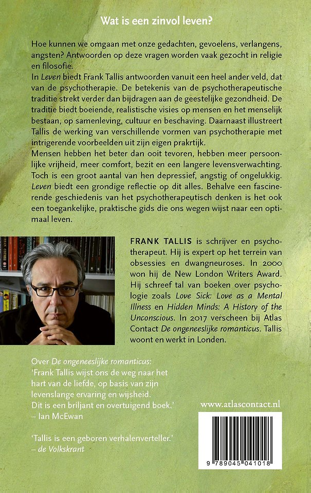 In 'Leven' biedt Frank Tallis antwoorden vanuit een ander veld, dat van de psychotherapie. De betekenis van de psychotherapeutische traditie strekt verder dan bijdragen aan de geestelijke gezondheid. De traditie biedt boeiende, realistische visies op mensen en het menselijk bestaan, op samenleving, cultuur en beschaving. Daarnaast illustreert Tallis de werking van verschillende vormen van psychotherapie met intrigerende voorbeelden uit zijn eigen praktijk.