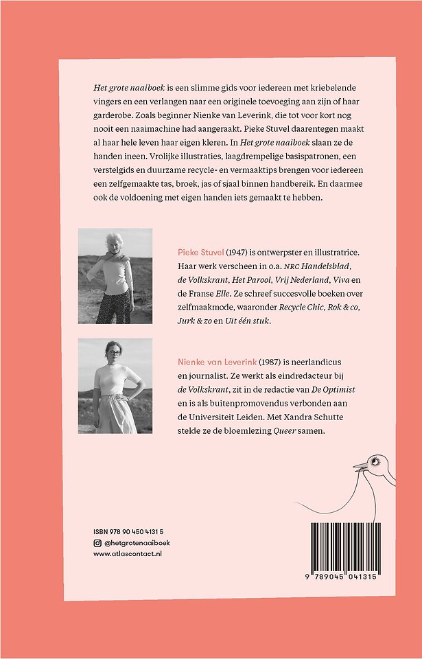 'Het grote naaiboek' is een slimme gids voor iedereen met kriebelende vingers en een verlangen naar een originele toevoeging aan zijn of haar garderobe. Zoals beginner Nienke van Leverink, die tot voor kort nog nooit een naaimachine had aangeraakt. Pieke Stuvel daarentegen maakt al haar hele leven haar eigen kleren. In 'Het grote naaiboek' slaan ze de handen ineen. Vrolijke illustraties, laagdrempelige basispatronen, een verstelgids en duurzame recycle- en vermaaktips brengen voor iedereen een zelfgemaakte tas, broek, jas of sjaal binnen handbereik. En daarmee ook de voldoening met eigen handen iets gemaakt te hebben.