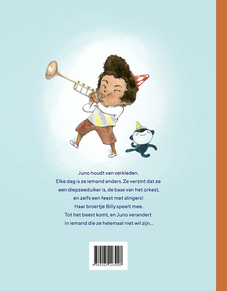 Juno verkleedt zich elke dag als iemand anders. Ze is een bliksemjager of een diepzeeduiker, en zelfs een feest met slingers. Haar broertje Billy speelt mee. Maar Juno’s verbeelding kent geen grenzen en haar spelletjes worden steeds wilder. Billy vindt het niet meer leuk, en Juno zelf eigenlijk ook niet. Hoog tijd voor een rustpauze…