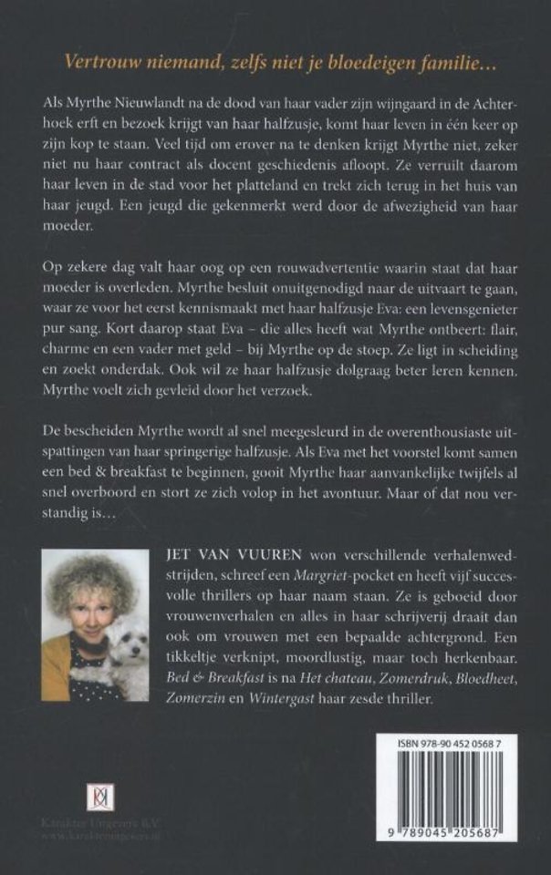 De bescheiden Myrthe wordt al snel meegesleurd in de overenthousiaste uitspattingen van haar springerige halfzusje. Als Eva met het voorstel komt samen een Bed & Breakfast te beginnen gooit Myrthe haar aanvankelijke twijfels al snel overboord en stort ze zich volop in het avontuur. Maar of dat nou verstandig is...