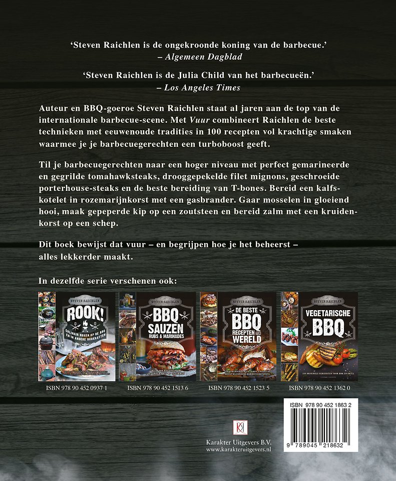 Een opwindend nieuw boek van dé barbecue-goeroe uit Amerika. Steven Raichlen combineert in zijn nieuwste boek Vuur de beste technieken met eeuwenoude tradities in 100 recepten vol krachtige smaken waarmee je je barbecuegerechten een turboboost geeft. Til je barbecuegerechten naar een hoger niveau met perfect gemarineerde en gegrilde tomahawksteaks, drooggepekelde filet mignons, geschroeide porterhouse-steaks en de beste bereiding van T-bones.