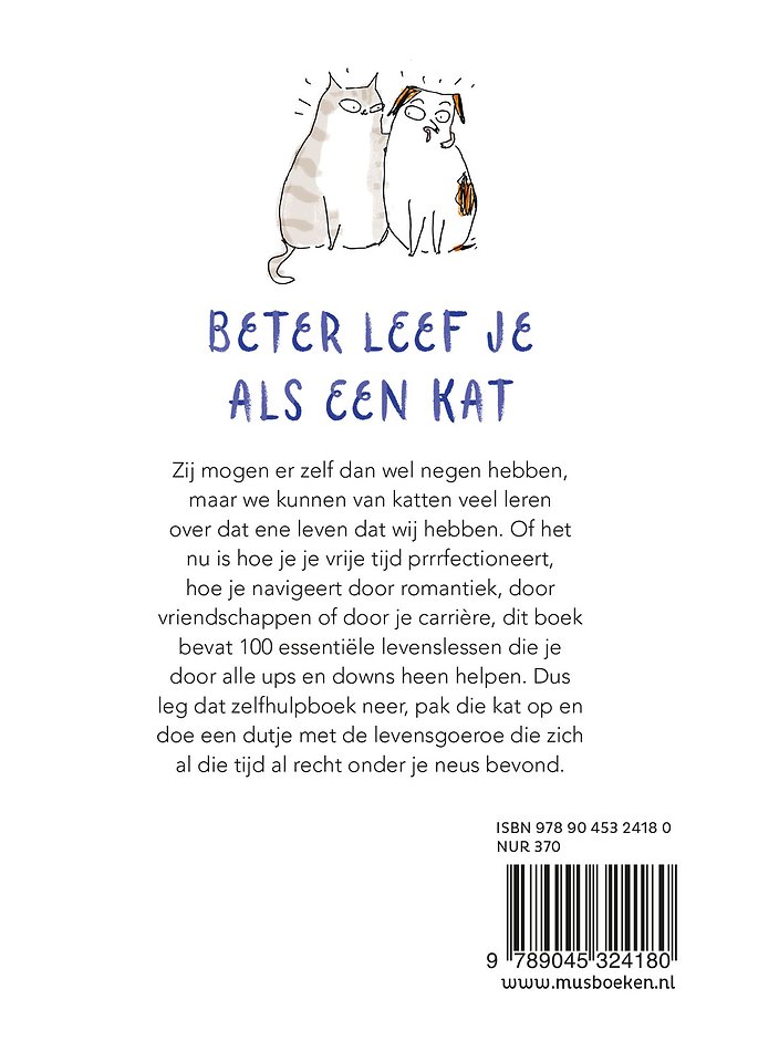 Zij mogen er dan zelf negen hebben, maar er is veel dat katten ons kunnen leren over dat ene leven dat wij hebben. Of het nu is om je me-time te prrrrrfectioneren, om te navigeren door romantiek, vriendschappen of je carrière – dit boek bevat 100 essentiële levenslessen om je door alle ups en downs heen te helpen. Dus leg dat zelfhulpboek neer en pak die kat op. Doe een tukje met de levensgoeroe die zich al die tijd al recht onder je neus bevond.