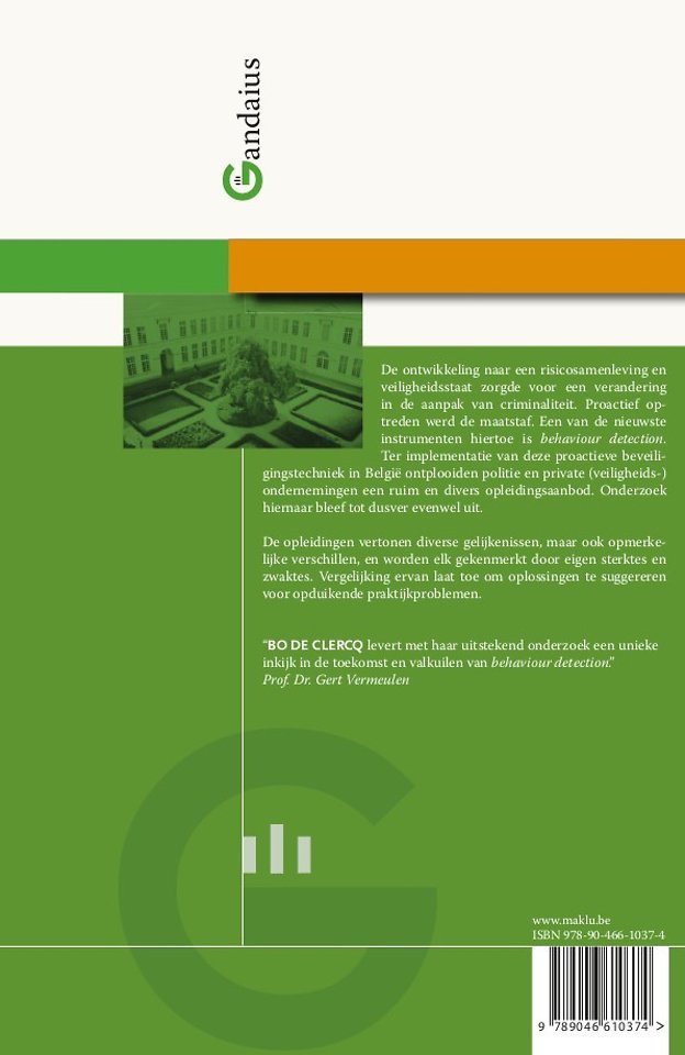 De ontwikkeling naar een risicosamenleving en veiligheidsstaat zorgde voor een verandering in de aanpak van criminaliteit. Proactief optreden werd de maatstaf. Een van de nieuwste instrumenten hiertoe is behaviour detection. Ter implementatie van deze proactieve beveiligingstechniek in België ontplooiden politie en private (veiligheids-) ondernemingen een ruim en divers opleidingsaanbod. Onderzoek hiernaar bleef tot dusver evenwel uit.