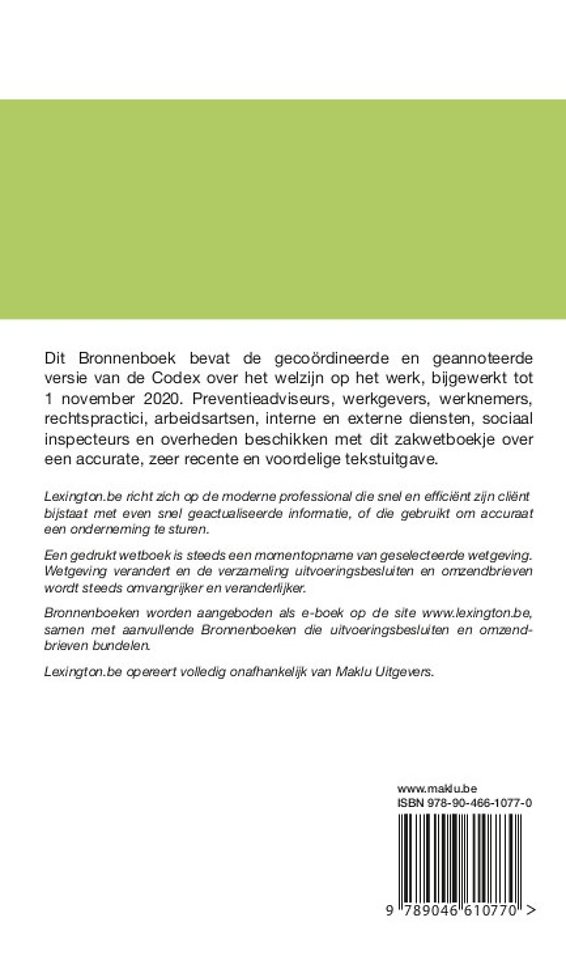 Dit Bronnenboek bevat de gecoördineerde en geannoteerde versie van de Codex over het welzijn op het werk, bijgewerkt tot 1 november 2020.