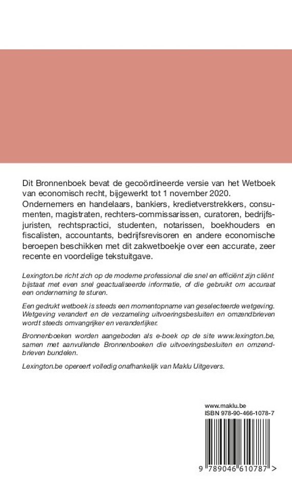 Dit Bronnenboek bevat de gecoördineerde versie van het Wetboek van economisch recht, bijgewerkt tot 1 november 2020.