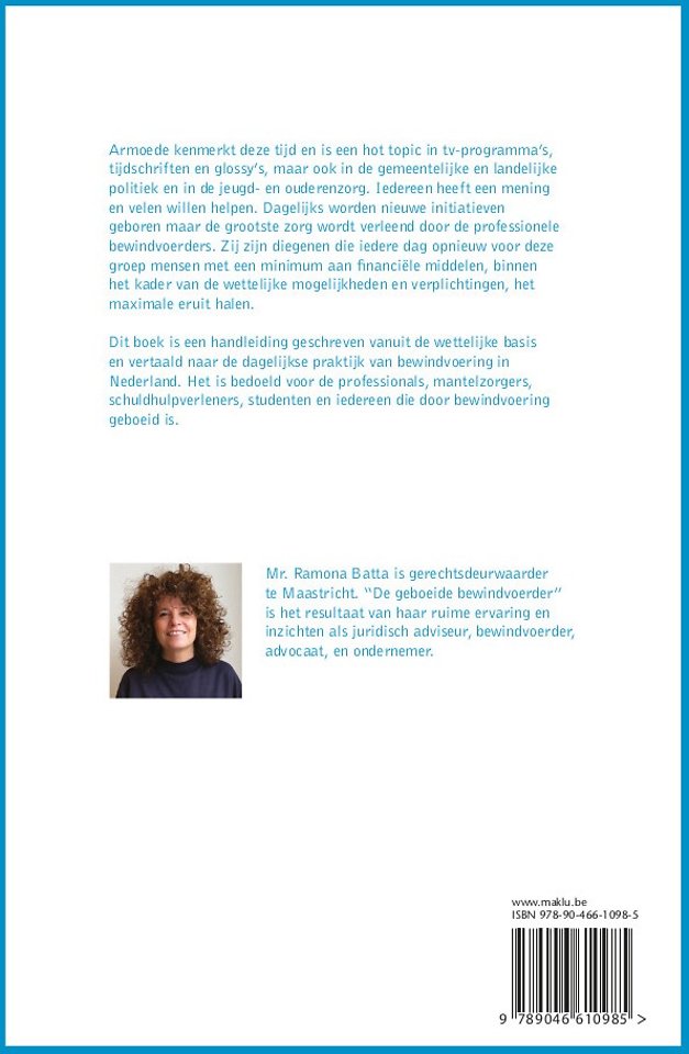 Dit boek is een handleiding geschreven vanuit de wettelijke basis en vertaald naar de dagelijkse praktijk van bewindvoering in Nederland. Het is bedoeld voor de professionals, mantelzorgers, schuldhulpverleners, studenten en iedereen die door bewindvoering geboeid is.