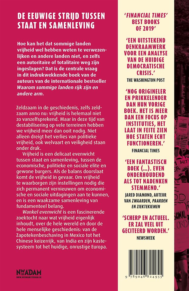 Vrijheid is een delicaat evenwicht tussen staat en samenleving, tussen de economische, politieke en sociale elite en gewone burgers. Als de balans doorslaat komt de vrijheid in gevaar. Voor vrijheid zijn instellingen nodig die zich permanent vernieuwen om economische en sociale uitdagingen aan te kunnen. Vrijheid is sterk afhankelijk van een waakzame samenleving.