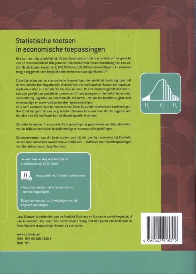 Statistische toetsen in economische toepassingen is geschreven voor hbo-studenten van bedrijfseconomische, bedrijfskundige en commerciële opleidingen.