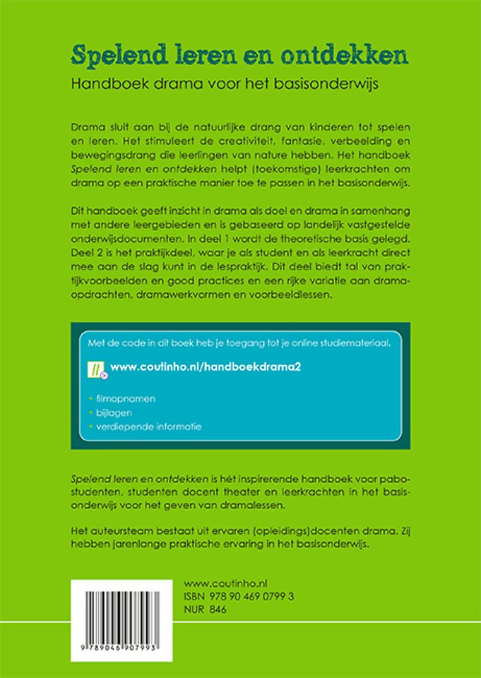 Drama sluit aan bij de natuurlijke drang van kinderen tot spelen en leren. Het stimuleert de creativiteit, fantasie, verbeelding en bewegingsdrang die leerlingen van nature hebben. Het handboek Spelend leren en ontdekken helpt (toekomstige) leerkrachten om drama op een praktische manier toe te passen in het basisonderwijs.