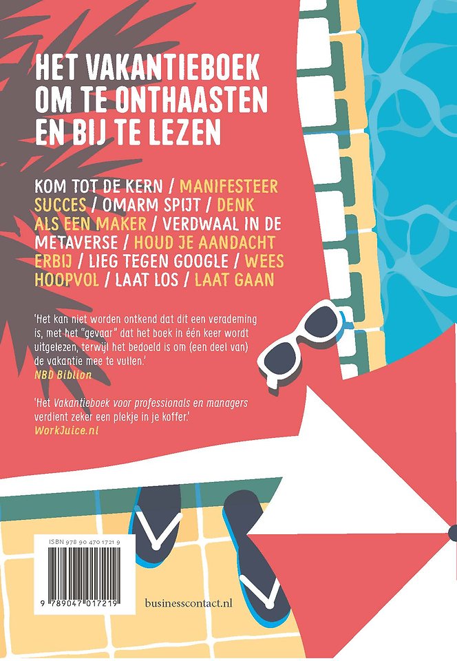 Het Vakantieboek voor professionals en managers wordt samengesteld uit de beste boeken en artikelen die het afgelopen jaar onder de aandacht kwamen van de redactie van uitgeverij Business Contact, aangevuld met samenvattingen van de boeken waar je als professional wel iets van gelezen móét hebben.