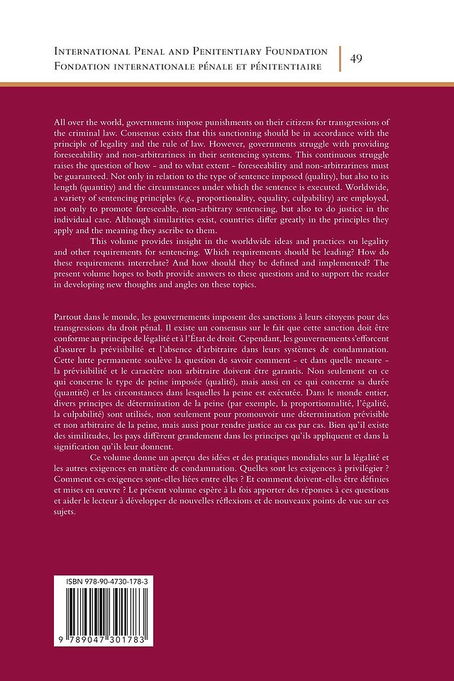 Ce volume donne un aperçu des idées et des pratiques mondiales sur la légalité et les autres exigences en matière de condamnation. Quelles sont les exigences à privilégier ? Comment ces exigences sont-elles liées entre elles ? Et comment doivent-elles être définies et mises en œuvre ? Un large éventail de sujets et de questions sont abordés à propos de ces exigences. Quelques exemples : comment équilibrer le pouvoir discrétionnaire du juge et le principe de légalité ? L'exécution des peines doit-elle relever du pouvoir judiciaire ou de l'administration ? Quelle est la relation entre le principe de légalité et l'interdiction de la discrimination ? Les juges humains peuvent-ils pratiquer des peines cohérentes ? La libération provisoire doit-elle être un pouvoir discrétionnaire ou un droit ? Et : comment accroître la confiance du public dans la détermination de la peine ? Le présent volume espère à la fois apporter des réponses à ces questions et aider le lecteur à développer de nouvelles réflexions et de nouveaux points de vue sur ces sujets.