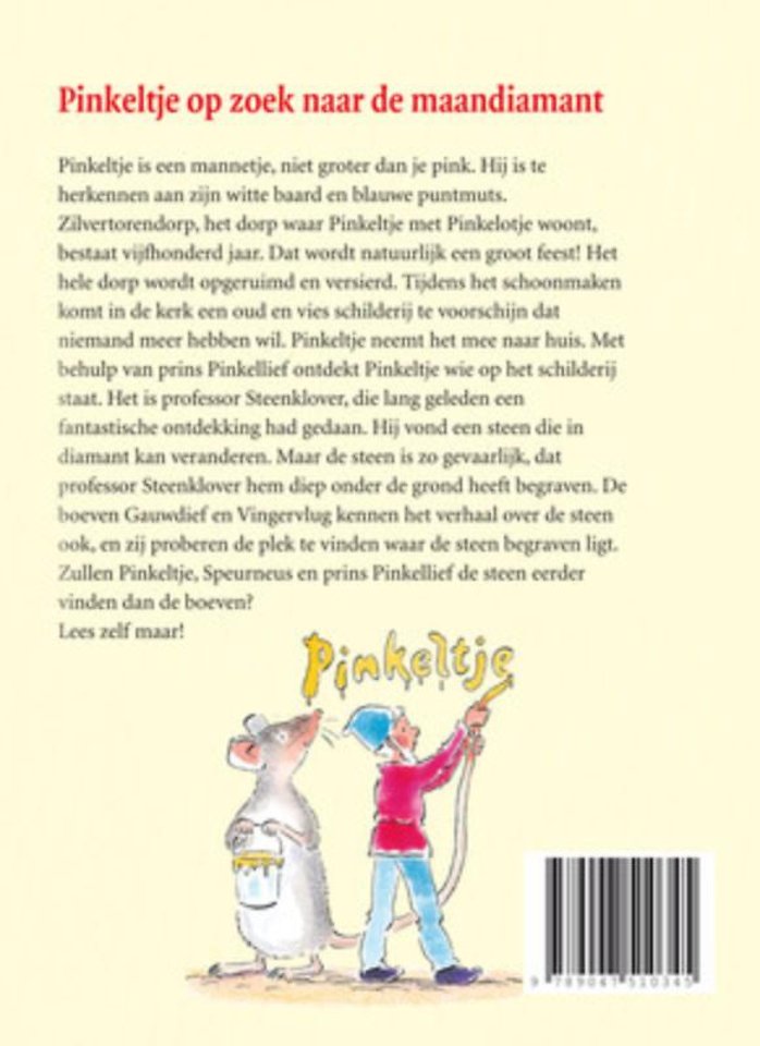 Pinkeltje is een mannetje, niet groter dan je pink. Hij is te herkennen aan zijn witte gaard en blauwe pountmuts. Zilvertorendorp, het dorp waar Pinkeltje met Pinkelotje woont bestaat vijfhonderd jaar. Dat wordt natuurlijk een groot feest! Het hele dorp wordt opgeruimd en versierd. Tijdens het schoonmaken komt in de kerk een oud en vies schilderij te voorschijn dat niemand meer hebben wil. Pinkeltje neemt het mee naar huis. Met behulp van prins Pinkellief ontdekt Pinkeltje wie op het schilderij staat. Het is professor Steenklover, die lang geleden een fantastische ontdekking had gedaan. Hij vond een steen die in diamant kan veranderen. Maar de steen is zo gevaarlijk, dat professor Steenklover hem diep onder de grond heeft begraven. De boeven Gauwdief en Vingervlug kennen het verhaal over de steen ook, en zij proberen de plek te vinden waar de steen begraven ligt. Zullen Pinkeltje, Speurneus en prins Pinkllief de steen eerder vinden dan de boeven? Lees zelf maar!
