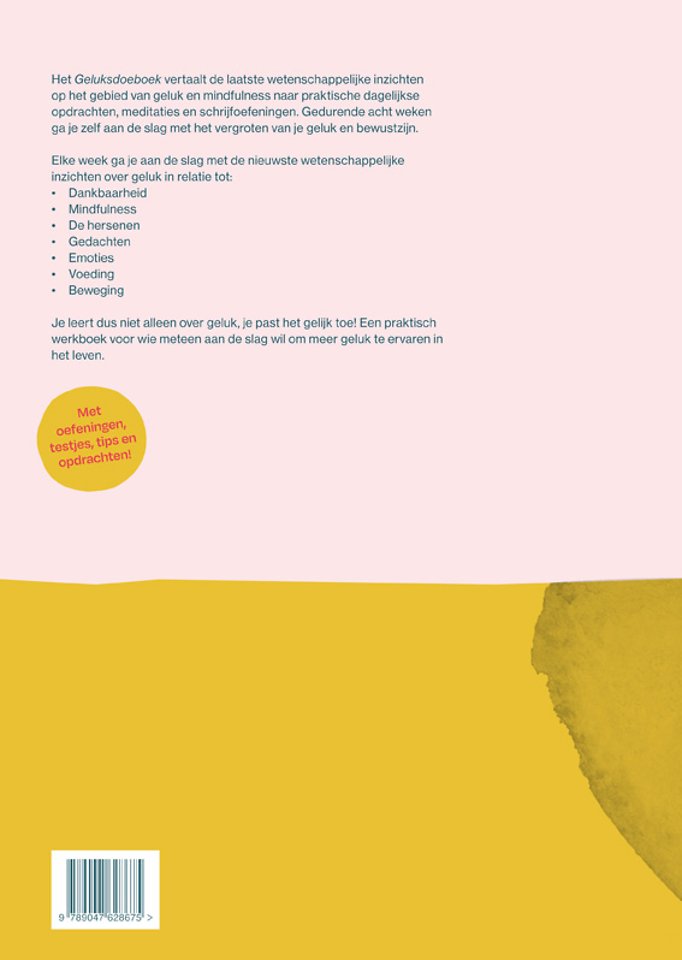 Het Geluksdoeboek vertaalt de laatste wetenschappelijke inzichten op het gebied van geluk en mindfulness naar praktische dagelijkse opdrachten, meditaties en schrijfoefeningen. Gedurende acht weken ga je zelf aan de slag met het vergroten van je geluk en bewustzijn. Elke week ga je aan de slag met de nieuwste wetenschappelijke inzichten over geluk in relatie tot: