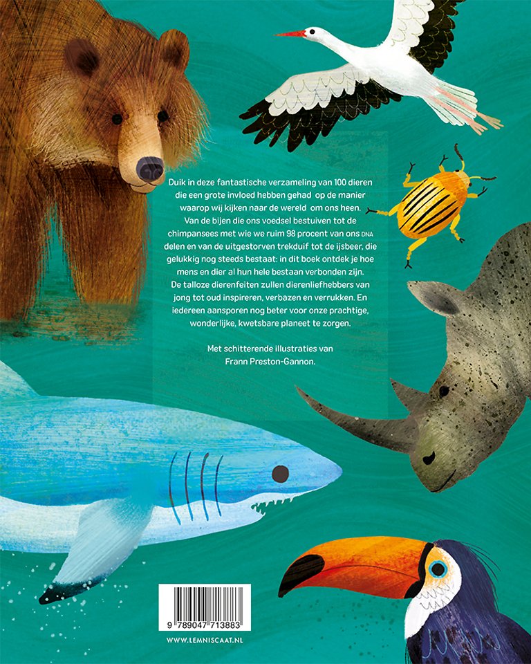 Nu heeft hij zijn verhalen over deze 100 dieren herschreven voor kinderen, en de illustrator van Ik wou dat ik een vogel was, Frann Preston-Gannon,maakte er 100 schitterende dierenplaten bij.