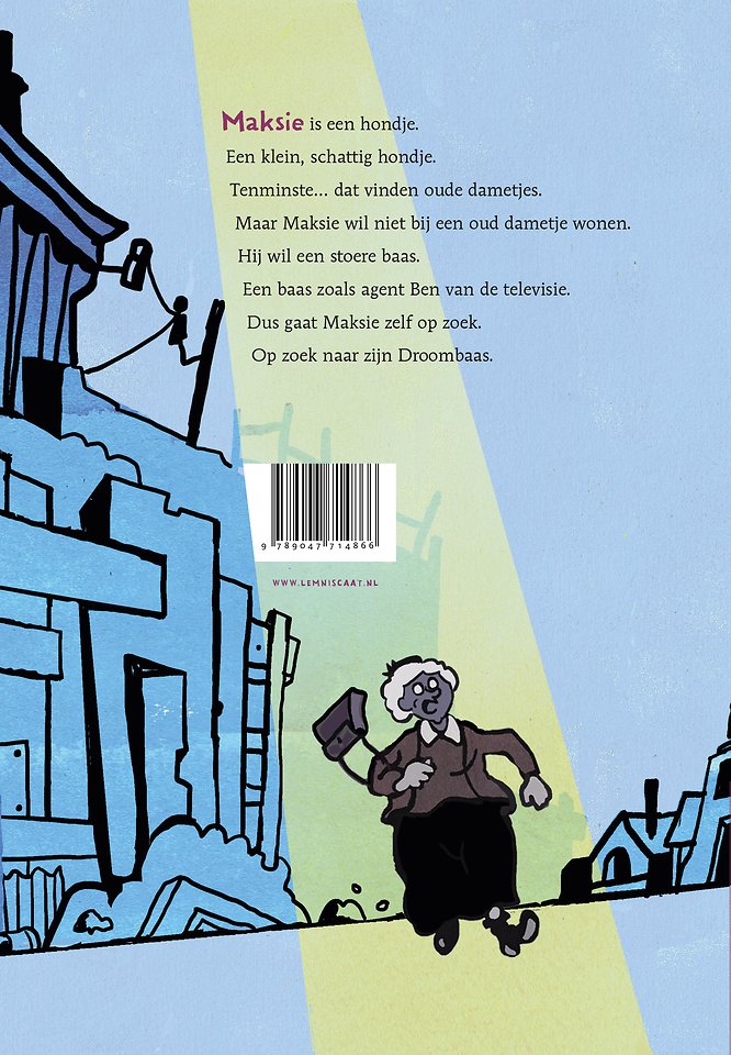 Dus besluit Maksie zelf op zoek te gaan naar een baasje. Hij gaat naar buiten en al snel heeft hij Droombaas gevonden. Alleen doet Droombaas raar… en blijft er steeds een oude dametje achter Maksie aan zitten.