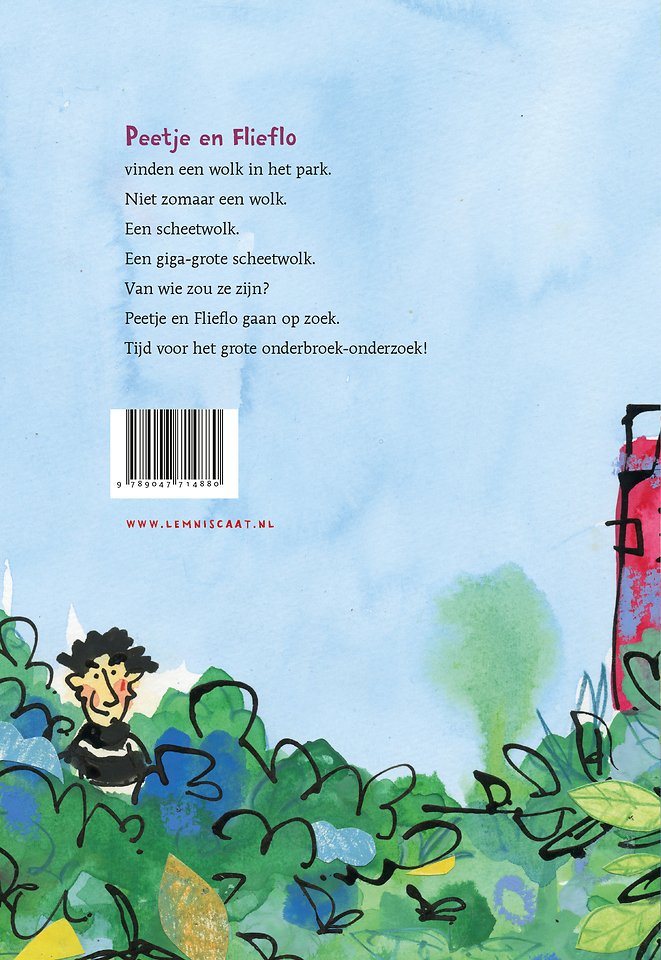 Op een dag vinden Peetje en Flieflo een eenzame wolk boven de bank in het park. Het is niet zomaar een wolk: het is een scheetwolk. Een geweldige, gigagrote scheetwolk, zo eentje die je niet zomaar zelf kunt produceren. Haar baasje is verdwenen en heeft haar achtergelaten, helemaal alleen. Bij wie zou ze horen?