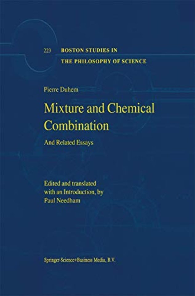 Much of Duhem's work as a professional scientist was closely related to the newly emerging discipline of physical chemistry. The book and associated papers translated here revolve around his concomitant philosophical and historical interests in chemistry-topics largely uncovered by Duhem's writings hitherto available in English. He understood contemporary concerns of chemists to be a development of the ancient dispute over the nature of mixture. Having developed his historical account from distinctions drawn from the atomists and Aristotelians of antiquity, he places his own views of chemical combination squarely within the Aristotelian tradition. Apart from illuminating Duhem's own work, it is of interest to see how the ancient dispute can be related to modern science by someone competent to make such comparisons. The book is lucid and logically stringent without assuming any particular mathematical prerequisites, and provides a masterly statement of an important line of nineteenth century thought which is of interest in its own right as well as providing insight into Duhem's broader philosophical views.