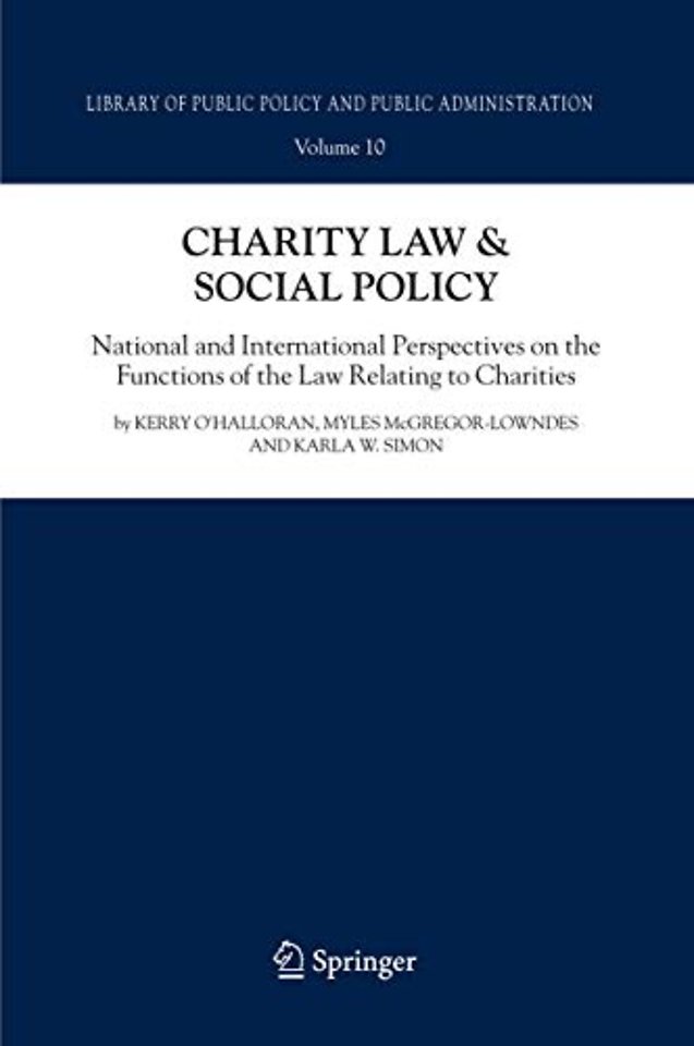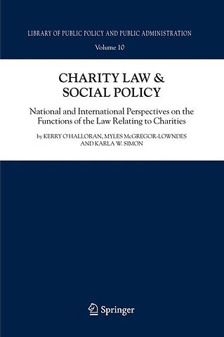 Charity Law & Social Policy explores contemporary law, policy and practice in a range of modern common law nations in four parts and from the perspective of how this has evolved in the UK.