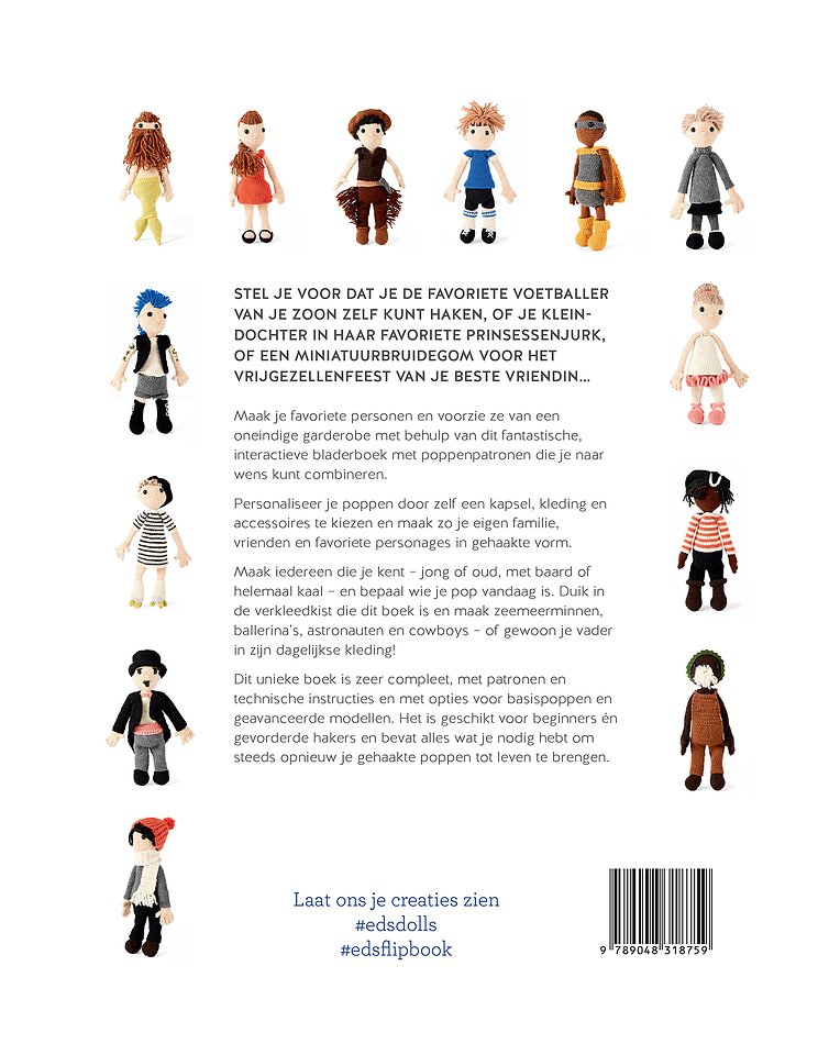 Personaliseer je poppen met hun eigen haarkleur, kapsel, outfits en accessoires. Maak iedereen die je kent (jong, oud, met baard of kaal). Duik in Edwards verkleedkist, om zeemeerminnen, astronauten of cowboys te haken: de mogelijkheden zijn eindeloos!