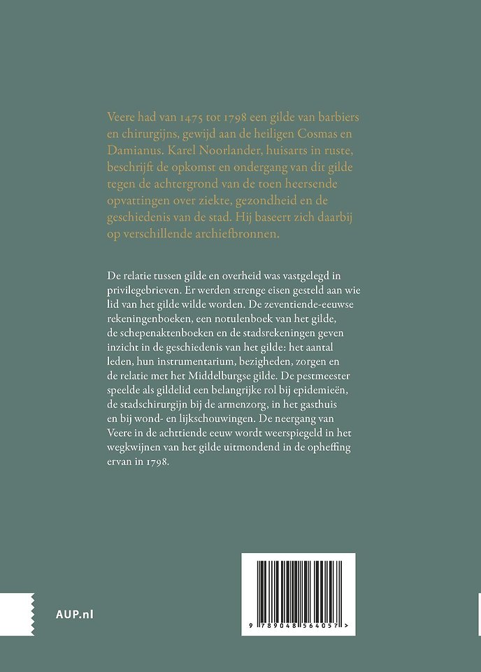 Veere had van 1475 tot 1798 een gilde van barbiers en chirurgijns, gewijd aan de heiligen Cosmas en Damianus. Karel Noorlander, huisarts in ruste, beschrijft de opkomst en ondergang van dit gilde tegen de achtergrond van de toen heersende opvattingen over ziekte, gezondheid en de geschiedenis van de stad. Hij baseert zich daarbij op verschillende archiefbronnen.