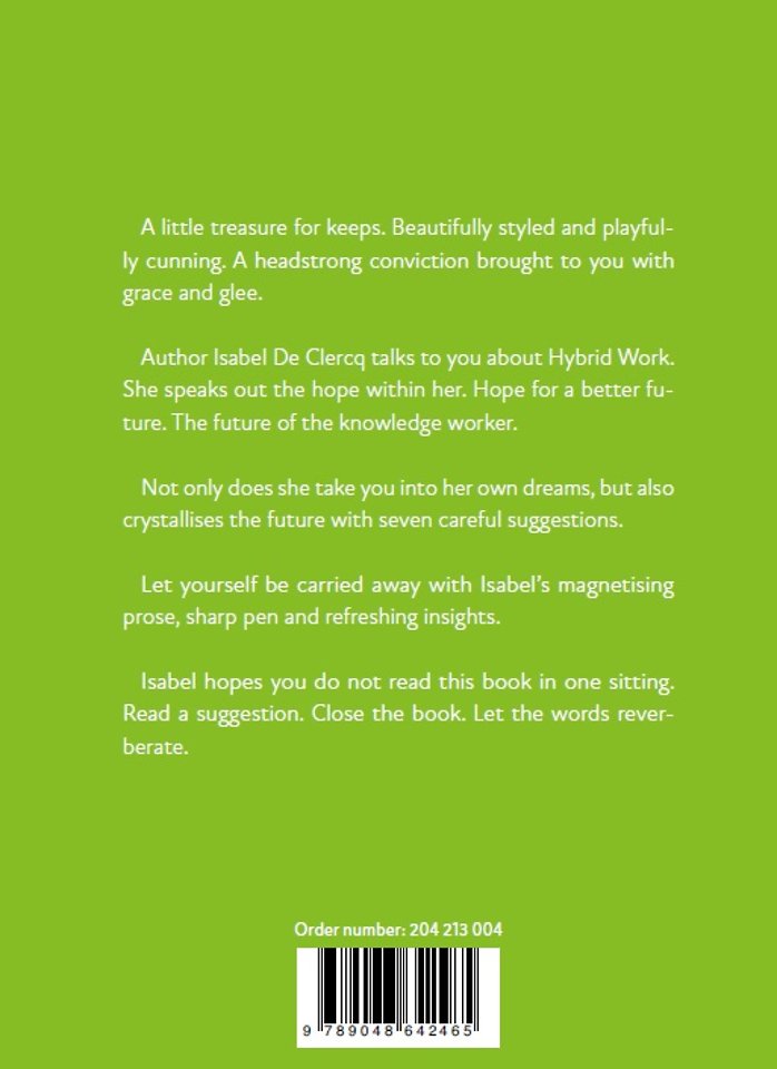 "This booklet is a message of hope. Hope that Covid-19 also brought beauty." Isabel De Clercq's manifesto about hybrid work will soon be published in English, after the very appreciated edition in Dutch. Are you looking forward to get yours first? Register now and you'll receive your copy as soon as available.