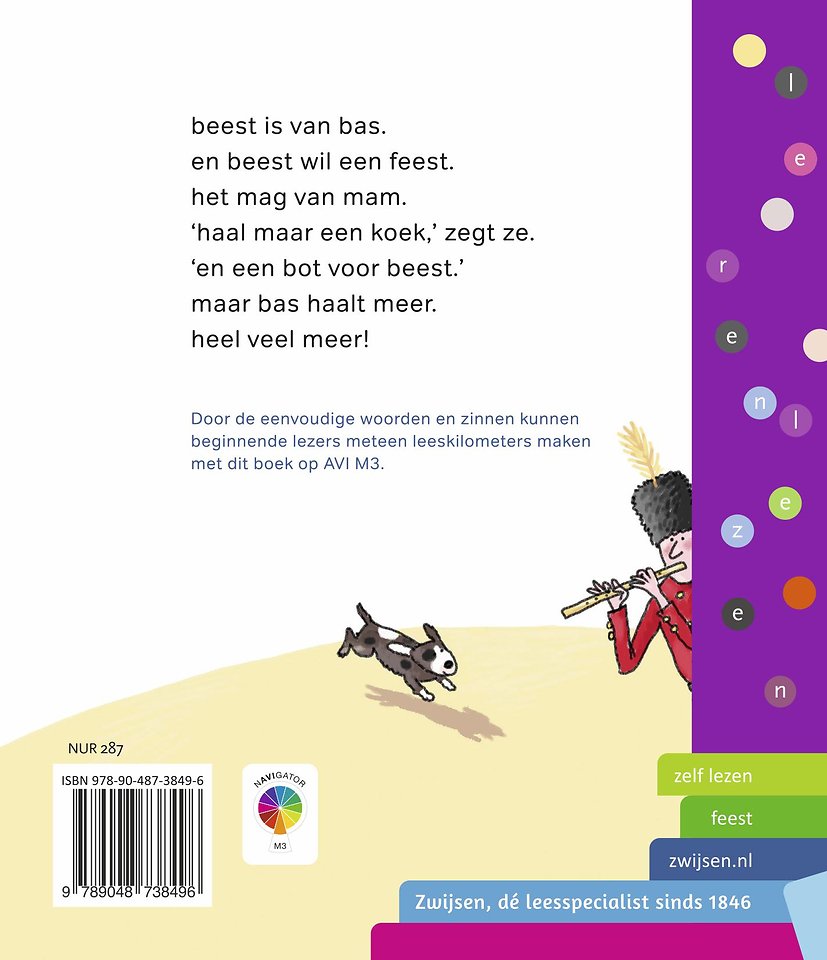 Herkenbaar leesboek op AVI M3, speciaal voor kinderen die net leren lezen. De hond van Bas wil een feest. Mama vindt het goed en Bas gaat inkopen doen. Maar hoeveel heb je eigenlijk nodig voor een feest? Door de korte woorden en eenvoudige zinnen kunnen beginnende lezers meteen leeskilometers maken.