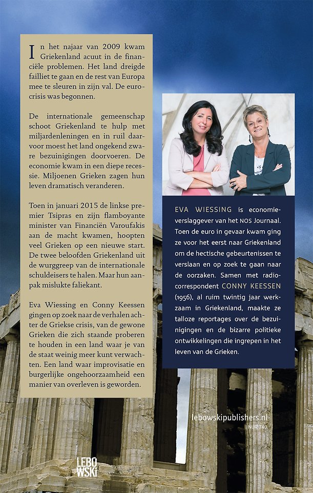 Conny Keessen (1956), al ruim twintig jaar werkzaam in Griekenland, maakte ze talloze reportages over de bezuinigingen en de bizarre politiek ontwikkelingen die ingrepen in het leven van de Grieken.