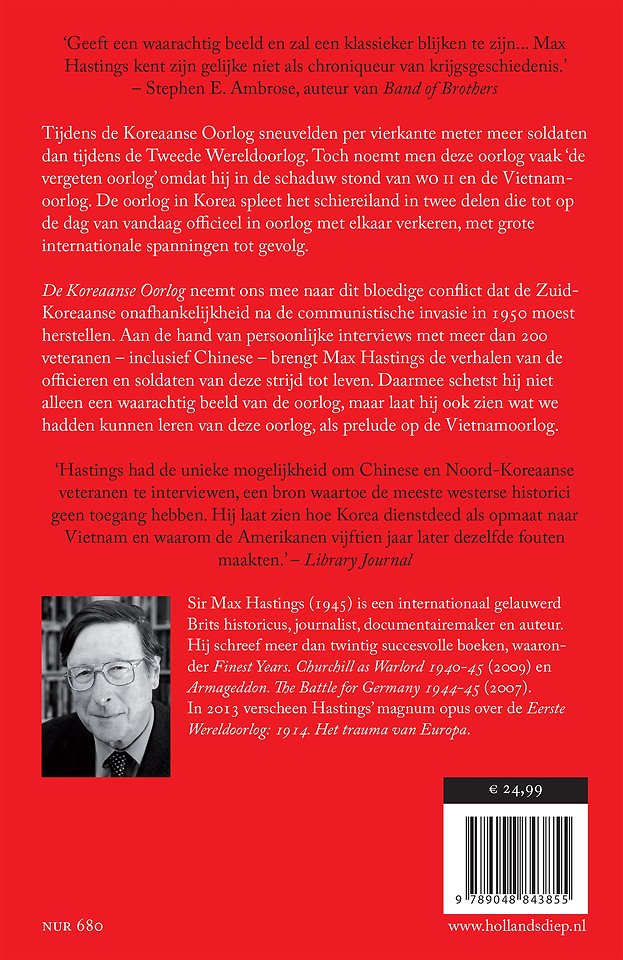 Tijdens de Koreaanse Oorlog sneuvelden per vierkante meter meer soldaten dan tijdens de Tweede Wereldoorlog. Toch noemt men deze oorlog vaak 'de vergeten oorlog' omdat hij in de schaduw stond van WO II en de Vietnamoorlog. De oorlog in Korea spleet het schiereiland in twee delen die tot op de dag van vandaag officieel in oorlog met elkaar verkeren, met grote internationale spanningen tot gevolg. De Koreaanse Oorlog neemt ons mee naar dit bloedige conflict dat de Zuid-Koreaanse onafhankelijkheid na de communistische invasie in 1950 moest herstellen. Aan de hand van persoonlijke interviews met meer dan 200 veteranen - inclusief Chinese - brengt Max Hastings de verhalen van de officieren en soldaten van deze strijd tot leven. Daarmee schetst hij niet alleen een waarachtig beeld van de oorlog, maar laat hij ook zien wat we hadden kunnen leren van deze oorlog, als prelude op de Vietnamoorlog.