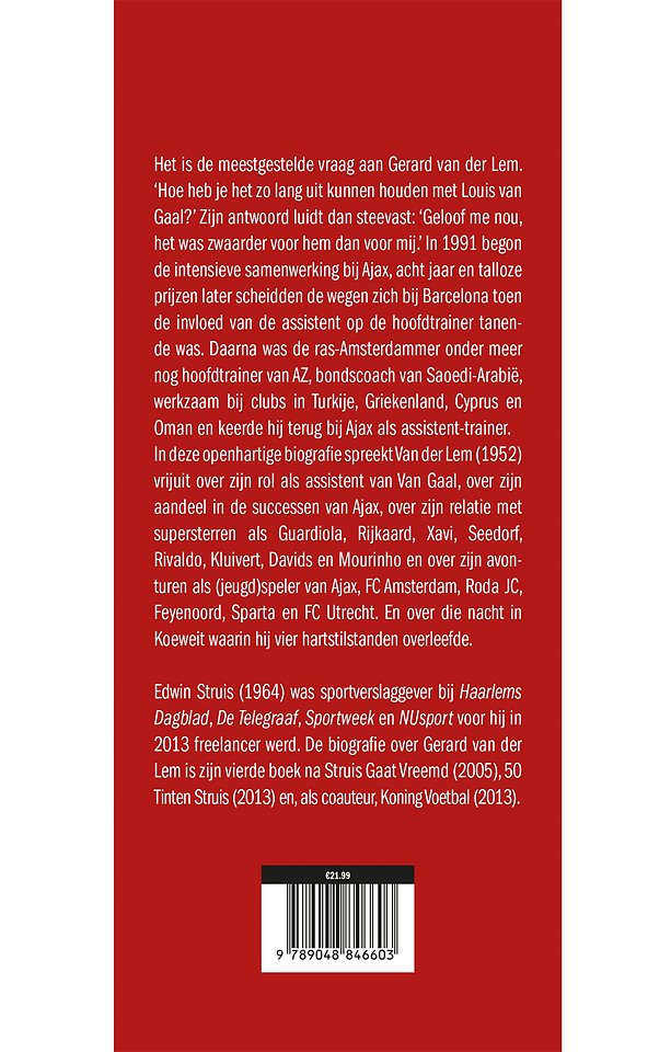 In deze openhartige biografie spreekt Van der Lem (1952) vrijuit over zijn rol als assistent van Van Gaal, over zijn aandeel in de successen van Ajax, over zijn relatie met supersterren als Mourinho, Guardiola, Xavi, Rivaldo, de broertjes De Boer, Rijkaard, Seedorf en Davids en over zijn avonturen als (jeugd)speler van Ajax, FC Amsterdam, Roda JC, Feyenoord, Sparta en FC Utrecht. En over die nacht in Koeweit waarin hij vier hartstilstanden overleefde.