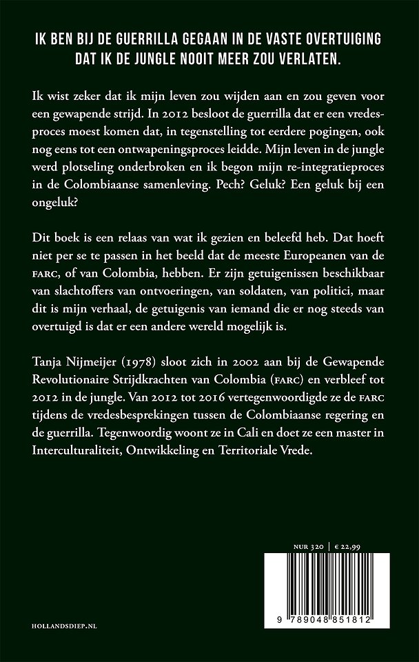 Dit boek is een relaas van wat ik gezien en beleefd heb. Dat hoeft niet per se te passen in het beeld dat de meeste Europeanen van de FARC, of van Colombia, hebben. Er zijn getuigenissen beschikbaar van slachtoffers van ontvoeringen, van soldaten, van politici, maar dit is mijn verhaal, de getuigenis van iemand die er nog steeds van overtuigd is dat er een andere wereld mogelijk is.