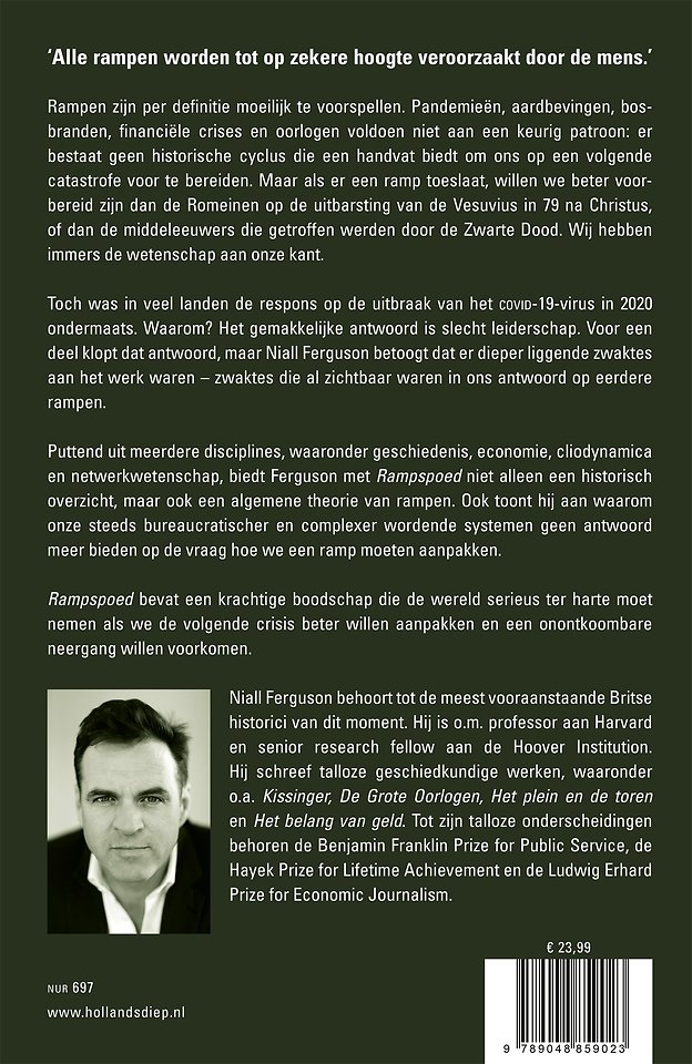 Puttend uit meerdere disciplines, waaronder geschiedenis, economie, geneeskunde en netwerkwetenschap, biedt Ferguson met Rampspoed niet alleen een historisch overzicht, maar ook een algemene theorie van rampen. En tevens een boodschap die de wereld zich serieus ter harte moet nemen als we de volgende crisis beter willen aanpakken en een onontkoombare neergang willen voorkomen.