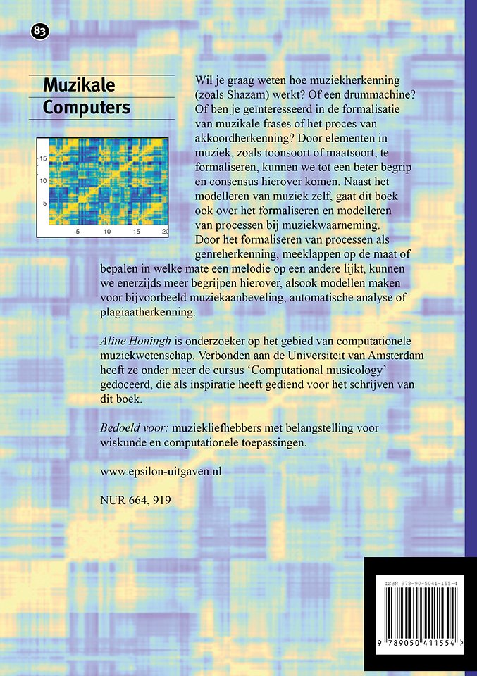 Wil je graag weten hoe muziekherkenning (zoals Shazam) werkt? Of een drummachine? Of ben je geïnteresseerd in de formalisatie van muzikale frases of het proces van akkoordherkenning? Door elementen in muziek, zoals toonsoort of maatsoort, te formaliseren, kunnen we tot een beter begrip en consensus hierover komen. Naast het modelleren van muziek zelf, gaat dit boek ook over het formaliseren en modelleren van processen bij muziekwaarneming. Door het formaliseren van processen als genreherkenning, meeklappen op de maat of bepalen in welke mate een melodie op een andere lijkt, kunnen we enerzijds meer begrijpen hierover, alsook modellen maken voor bijvoorbeeld muziekaanbeveling, automatische analyse of plagiaatherkenning.