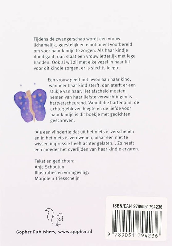 'Als een vlindertje dat uit het niets is verschenen en in het niets is verdwenen, maar een niet te wissen impressie heeft achter gelaten.'. Zo heeft een moeder het overlijden van haar kindje ervaren.