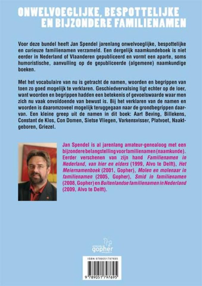 Voor deze bundel heeft Jan Spendel jarenlang onwelvoeglijke, bespottelijke en curieuze familienamen verzameld. Een dergelijk naamkundeboek is niet eerder in Nederland of Vlaanderen gepubliceerd en vormt een aparte, soms humoristische, aanvulling op de gepubliceerde (algemene) naamkundige boeken.