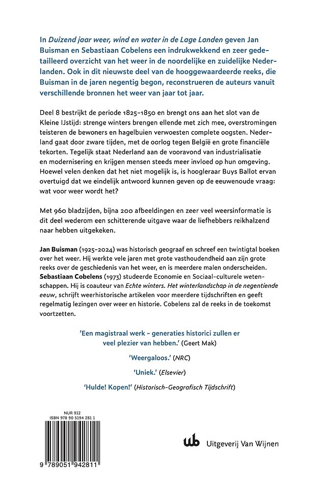 In 'Duizend jaar weer, wind, en water in de Lage Landen' geeft Jan Buisman een indrukwekkend en zeer gedetailleerd overzicht van het weer in de noordelijke en zuidelijke Nederlanden door de eeuwen heen.
