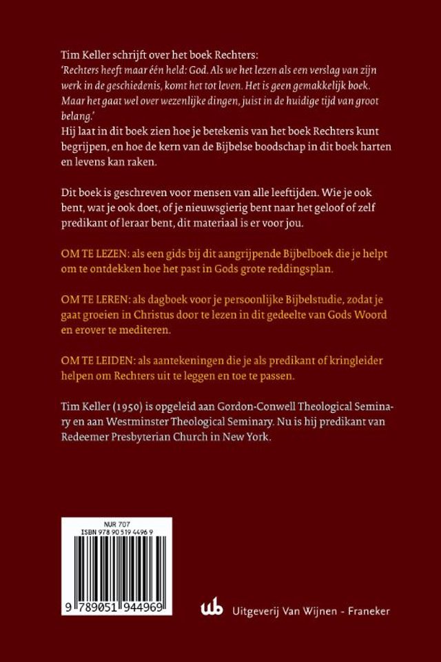 Dit is een studiegids voor Bijbelkringen, die hoort bij Tim Kellers boek over het bijbelboek Rechters.De gids bevat zes hoofdstukken en kan gebruikt worden voor persoonlijke meditatie en stille tijd, of voor kringen en Bijbelstudiegroepen.
