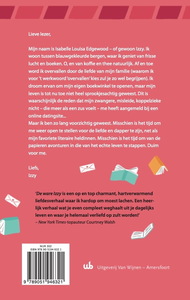 Izzy heeft een boekwinkel (in haar dromen), houdt van 'In de ban van de ring' en wacht op haar prins op het witte paard, maar hoe vind je die als je meer tijd doorbrengt met fictieve mensen dan echte?