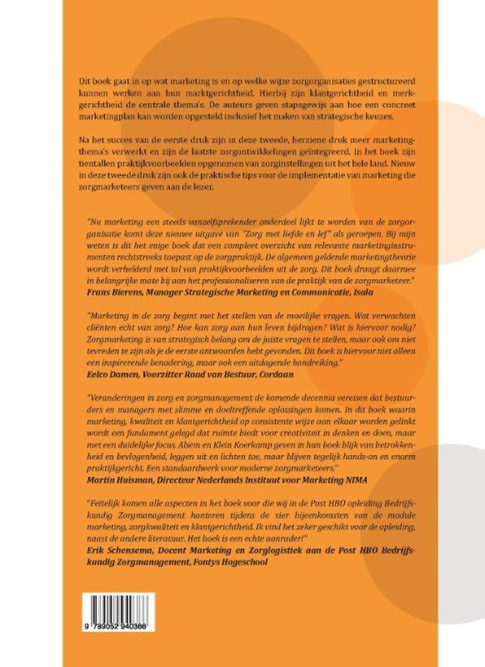 Ook zijn nieuwe ontwikkelingen in marketing geïntegreerd, zoals online, big data en nieuwe merkmodellen. Alle hoofdstukken eindigen met een nieuwe praktijkcase uit de zorg en er worden ook tips gegeven door de ‘eerste generatie’ zorgmarketeers.
