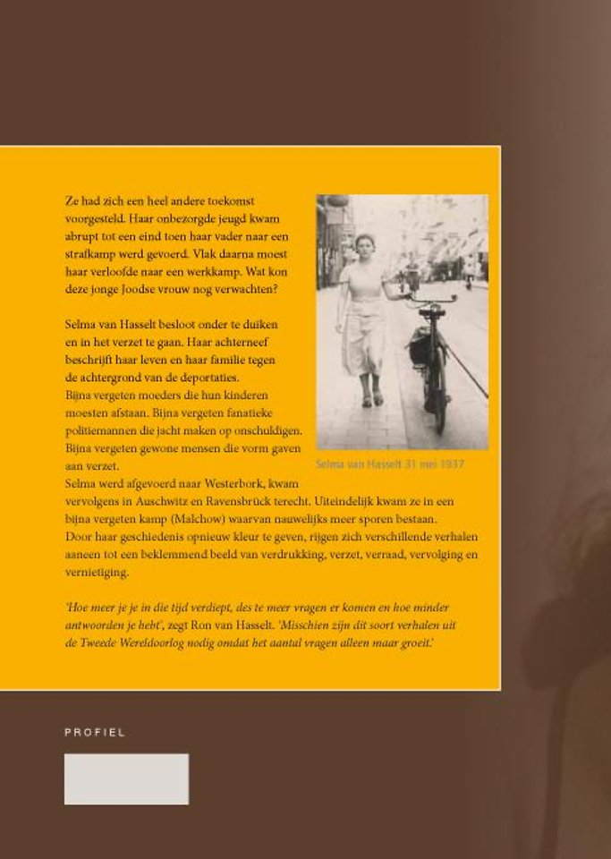 Selma van Hasselt besloot onder te duiken en in het verzet te gaan. Haar achterneef beschrijft haar leven en haar familie tegen de achtergrond van de deportaties.